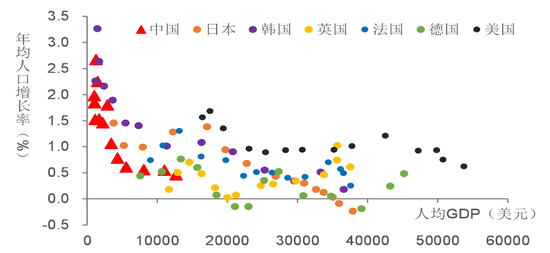同发达经济体相似阶段比较,我国人口增速下滑更早。