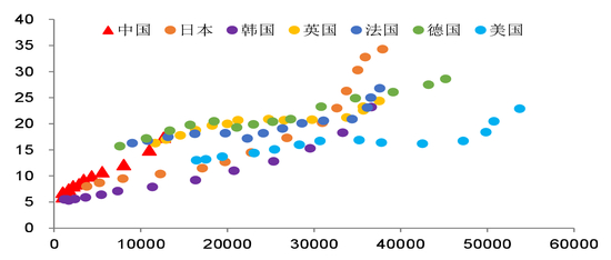 2022年或将进入深度老龄化阶段,人均GDP预估约1万美元,而发达国家多是在人均GDP达到2万美元时才进入深度老龄化阶段;