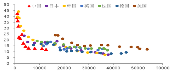 表2 主要经济体老龄化时人均GDP