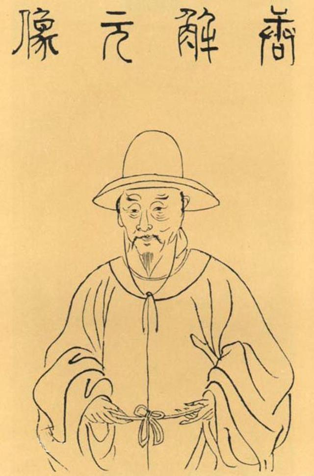 唐寅画像,头戴古笠。