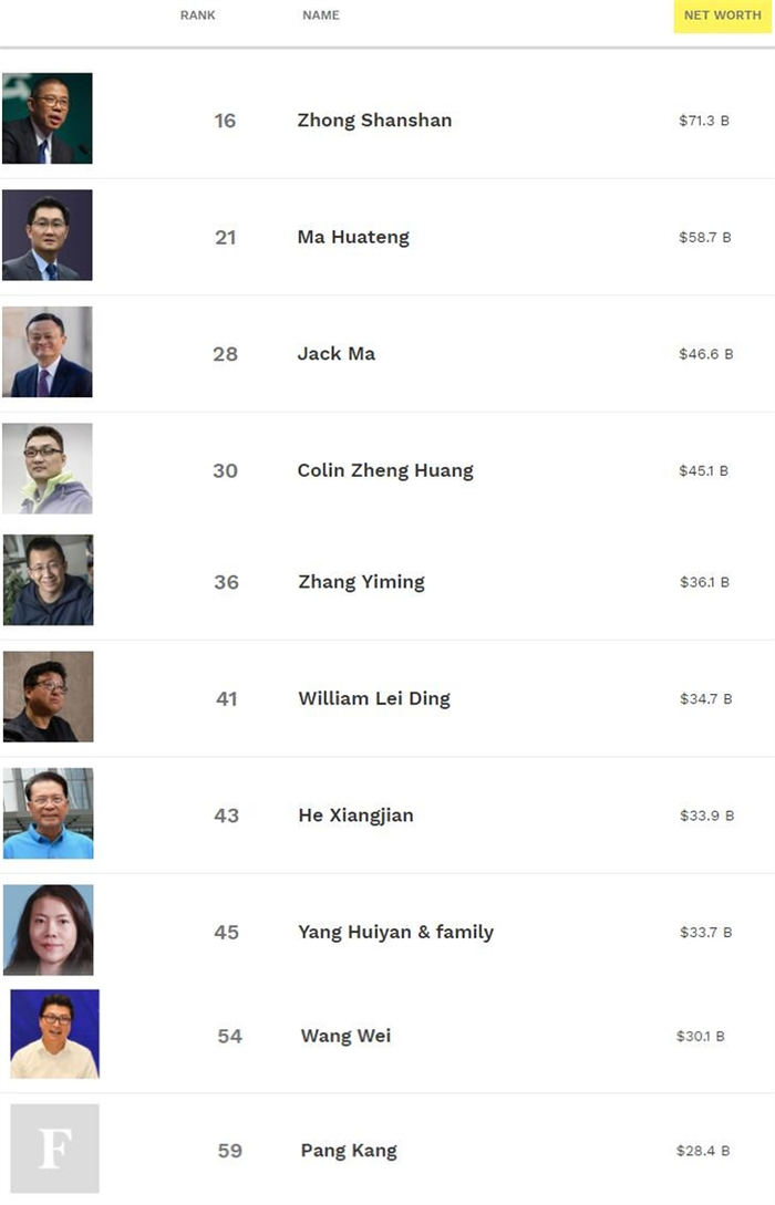 根据福布斯实时富豪榜最新数据,目前中国内地富豪前十分别为:钟睒睒、马化腾、马云、黄峥、张一鸣、丁磊、何享健、杨惠妍家族、王卫、庞康。下面,中新经纬记者就以这些大佬为例,为大家做一个盘点。