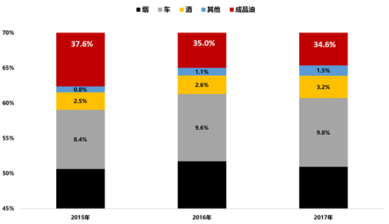 图表4 2015-2017年消费税细分项收入占比