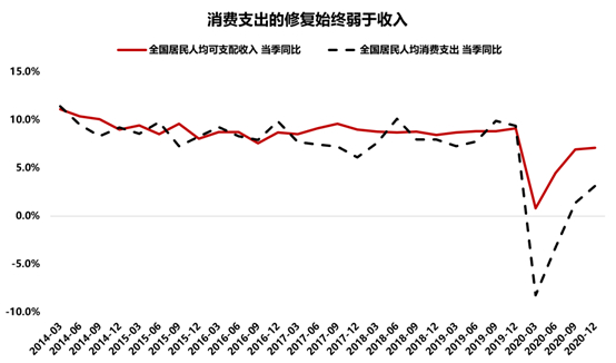 一方面,若税率不调整,简单后移征收环节,本来修复偏弱的消费支出或更加承压。受疫情的冲击,居民消费支出的修复仍然偏弱,2020年全年,全国居民人均消费支出增速始终低于人均可支配收入的增速。2021年一季度较2019年同期,两年人均消费支出同比增长8.0%,低于人均收入增速6.6个百分点,均显示消费的修复仍有距离。