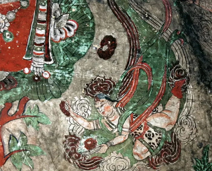 鹿是仙家的骐骥,是成仙的脚力。鹿王身上的设计,来自敦煌“飞天”飘带。莫高窟492个洞窟中,几乎窟窟画有飞天,曲线优美,飘逸灵动。