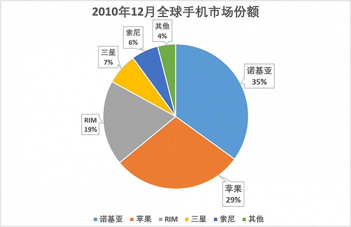 2003年,诺基亚1100全球销量突破2亿台,2009年,诺基亚手机出货量达到4.3亿部,甚至在2010年第二季度,诺基亚在移动终端市场的份额仍然还有35%。