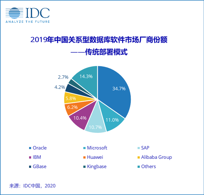 传统部署模式中,前四均为国外厂商。甲骨文占据中国市场的34.7%,收入为17.5亿元。