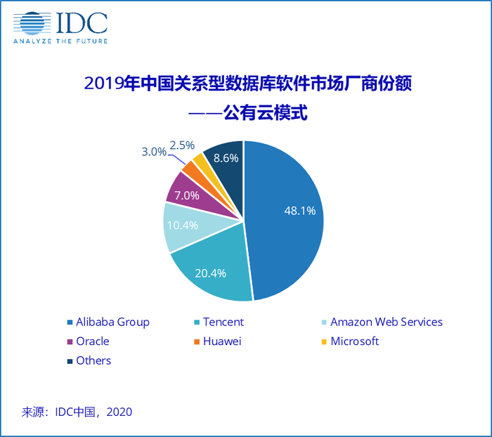 根据 IDC 数据显示:2019年中国关系型数据库软件市场规模为13.4亿美元(85.65亿人民币),其中传统部署模式市场规模为7.9亿美元(50.5亿人民币),公有云模式市场规模为5.5亿美元(35.16亿人民币)