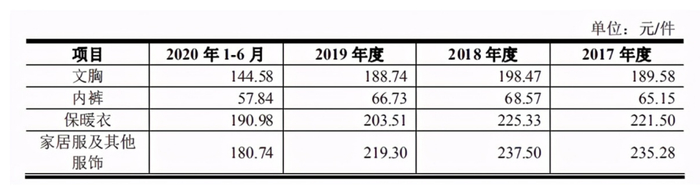 随着内衣的价格竞争愈发激烈,2017年至2020年上半年,爱慕也尝试着通过降价等手段回笼资金,可以看出其代表作品文胸的平均价格已经从接近200元降至150元以下。
