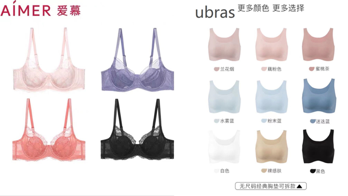 其次,很多人没有看到,无尺码内衣居然售价不高、造价更低。我们对比一下无尺码、无钢圈的内衣和传统内衣的外形就能发现: