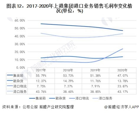 从港口业务销售毛利率来看,近几年,企业的集装箱、港口服务业务毛利率持续保持在35%以上的较高水平;2020年,四大港口业务销售毛利率均在10%以上,其中集装箱、港口服务业务的销售毛利率均超过40%,获利水平较高。