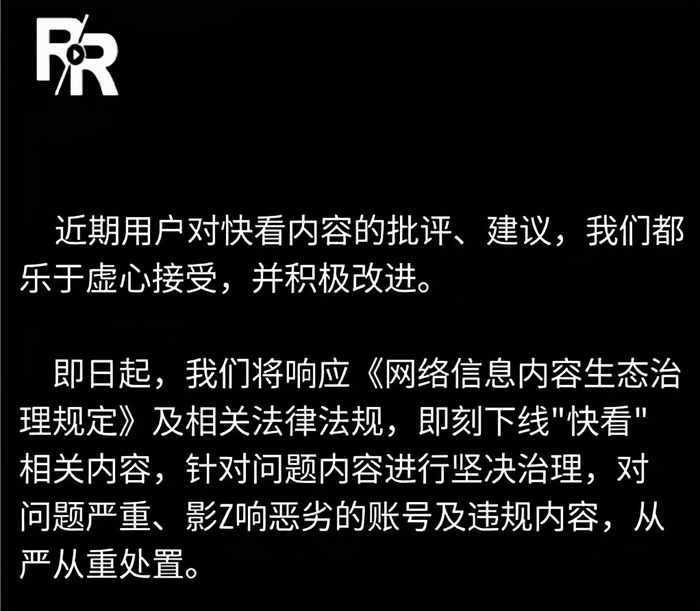 言论一出,迅速发酵。6月5日傍晚,有网友发现人人视频下架了《东城梦魇》。6月7日,人人视频发布整改声明称,将响应相关法律法规,即刻下线“快看”,针对问题内容进行坚决治理。