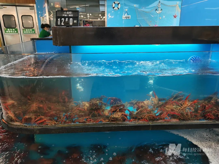 另一个更明显的例子是,盒马集市2斤/份的鲜活小龙虾(4~6钱/只)用了不到3个月时间,就从39.95元/斤跌到了12.45元/斤,跌幅超过6成。