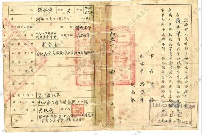 俞秀松、钱壮飞……上海虹口区档案馆首次公开他们的烈士证