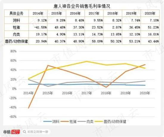 生猪业务的毛利率经历了一轮明显的周期,2018年不到3%,但2020年大幅反弹至51%,超过2015年的水平。