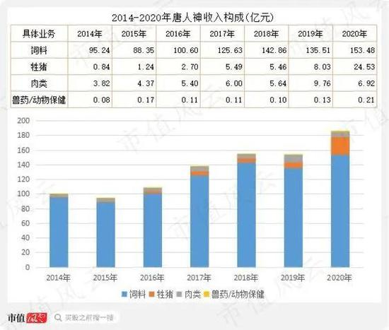 整体看,2014年以来唐人神的收入规模整体呈现增长态势,2020年达185亿元。
