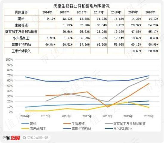 公司具体业务较多,其中饲料是第一大业务,2020年收入增长至42.15亿元;同期,生猪养殖跃升至第二大业务,达24.41亿元;玉米代收储收入接近20亿元;兽用药品收入保持增长态势,达8.5亿元。