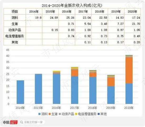 2014年至2019年,饲料是金新农的第一大业务,2020年生猪养殖收入超过饲料业务收入,跃升为第一大业务。