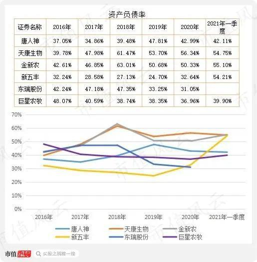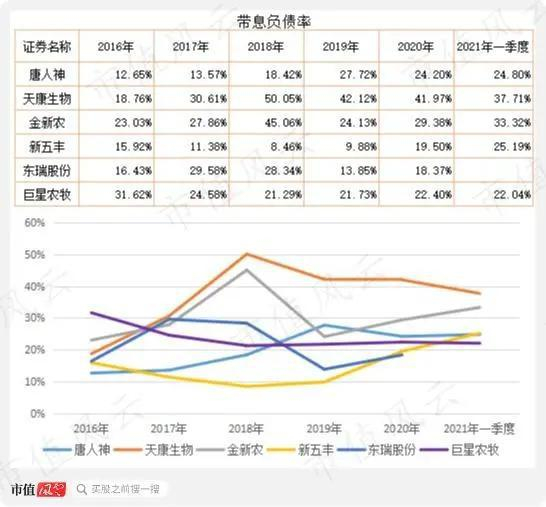 从资产负债率看,截止2021年一季度末,天康生物、金新农、新五丰三家公司均超55%,仍有加杠杆的空间,但不大;唐人神、巨星农牧分别为42%、40%,仍有较大的加杠杆空间;东瑞股份IPO融资后,负债率应该较2020年末更低。