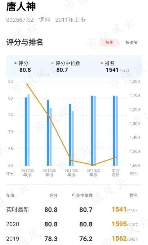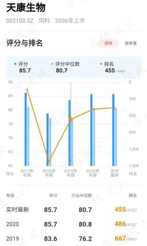 业绩稳步提升使得天康生物的评分排名有所上升。