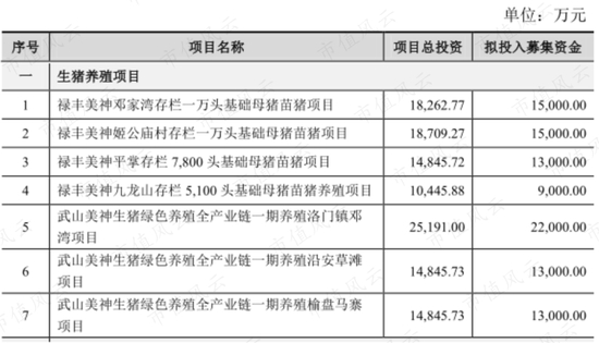 唐人神定增募集15.5亿元排第三,主要用于基础母猪苗猪项目建设;