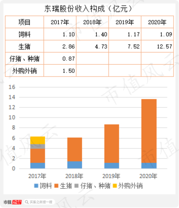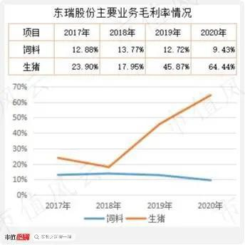 东瑞股份的饲料毛利率在2020年小幅降至9.4%,生猪业务毛利率增长至64.4%。