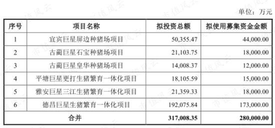 融资规模最高的是巨星农牧,达28亿元,主要用于存栏母猪8.64万头、年出栏生猪220万头等项目;