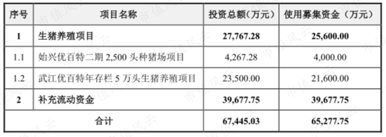 2021年4月招股说明书披露,IPO募集资金20亿元(扣除保荐与承销等费用后净额为18.1亿元),其中9.85亿元用于生猪养殖基地新建和扩建,8亿元用于补充流动资金,2508万元用于饲料公司扩建。