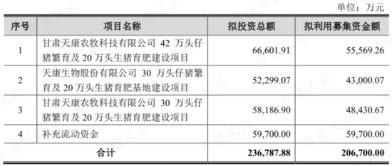 其次是天康生物,融资20.7亿元,主要用于102万头仔猪和60万头生猪育肥场地建设;