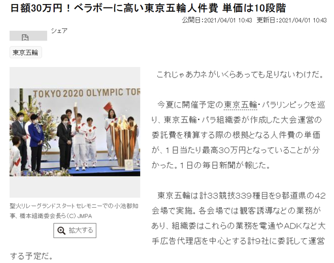 今年3月31日的时候,日本《每日新闻》自爆,东京奥组委为了保证赛事的顺利进行,会将观众引导等运营工作委托给相关企业。
