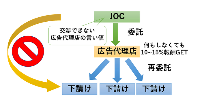 东京奥组委在预算规划里面承诺的是会直接和落地的广告公司进行合作,但是这九家公司全都采用了外包模式,自己拿走10%到15%的中介费。