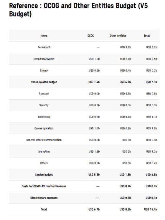 疫情的突然到来让东京奥运会选择了一年的延期举办,这突如其来的变化打乱了东京奥组委的预算框架,到去年年底的时候,东京奥组委已经对东京奥运会和残奥会的举办经费发布了第5版预算计划。