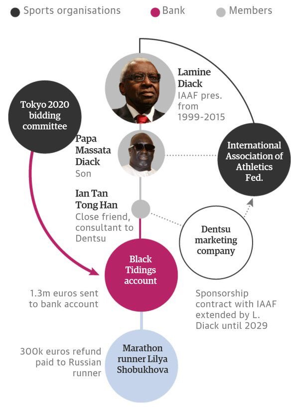 2016年里约奥运会结束以后,法国检察官因为涉及洗钱,对前国际奥委会委员、国际田联前主席迪亚克进行了调查。
