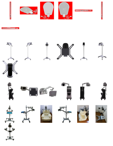 除此之外,就是造型各异的生发仪了。不得不说,生发仪的科技感更强,和理发店的烫染设备有点像,操作起来似乎也更加复杂。