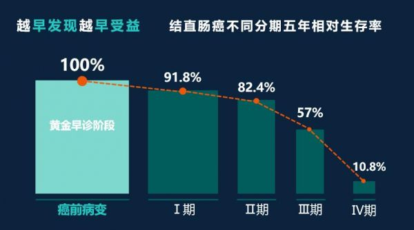 不过随着医疗技术发展,癌症并非不治之症,而早发现早治疗是关键。根据美国疾病控制预防中心(CDC)的筛查指南,结直肠癌、肺癌、宫颈癌、乳腺癌可以通过有效筛查,在早期没有任何症状的情况下被检测出。以结直肠癌为例,不同分期五年相对生存率差异巨大,早期发现“九生一死”,晚期发现“九死一生”。