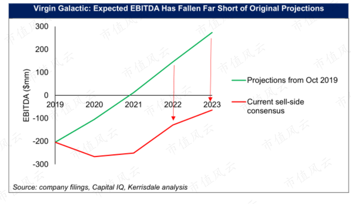 然而,根据Capital IQ的数据,目前市场对其2022年EBITDA的一致预期为-1.29亿美元,比公司最初目标低了2.74亿美元。