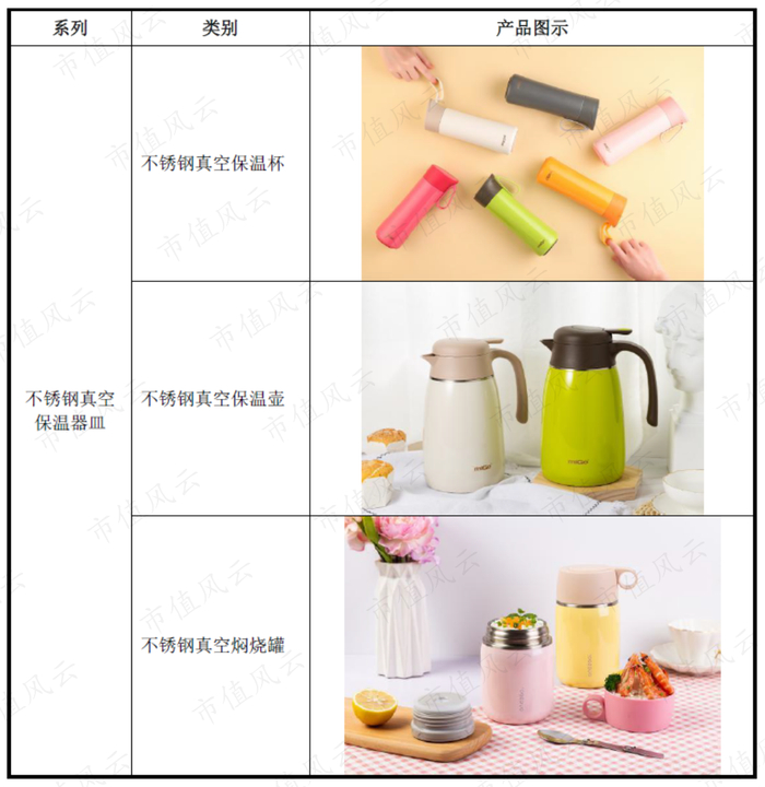 公司的产品主要包含不锈钢真空保温器皿、不锈钢器皿、塑料器皿和玻璃器皿等。