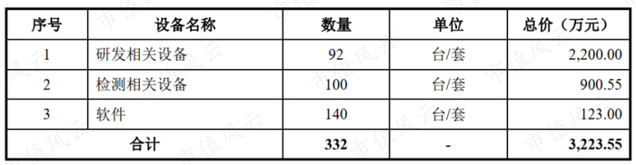风云君注意到,本次IPO第二大项目即为“研发检测中心项目”,拟投入5,876.96万元,其中设备购置费投入预计达3,223.55万元。