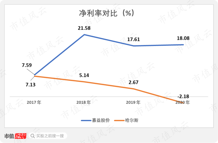 而哈尔斯的净利率在2017年和公司接近,均约为7%,随后逐年下滑至2020年的-2.18%。
