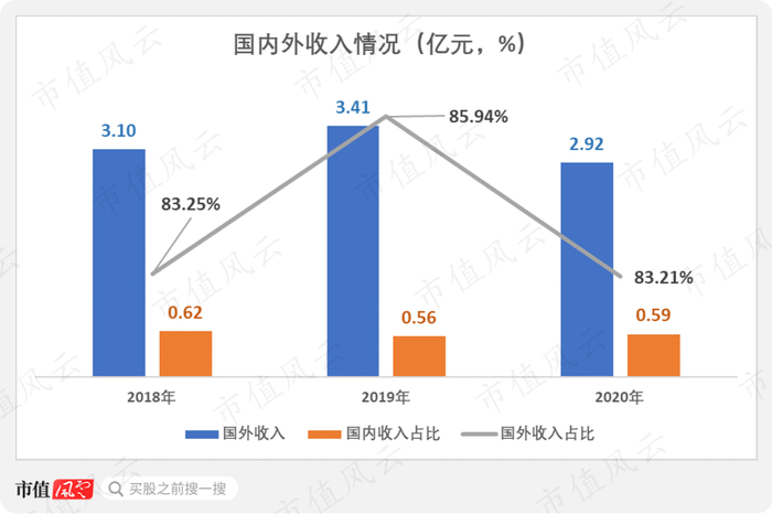 总体来看,由于公司当前仍主要为外资品牌代工,所以国外收入远高于国内。2018年至2020年的国外收入分别为3.1亿、3.41亿和2.92亿,占比分别达83.25%、85.94%和83.21%。
