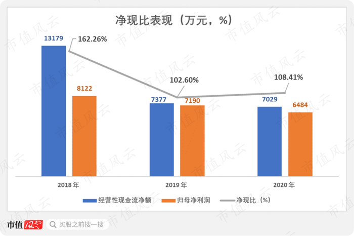 同期,公司的经营性现金流净额为1.32亿、7377.29万和7029.55万,三年合计为2.76亿,净现比每年均超100%。