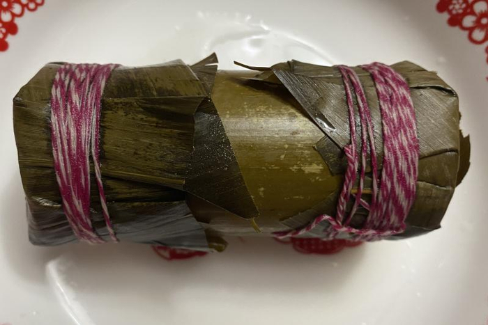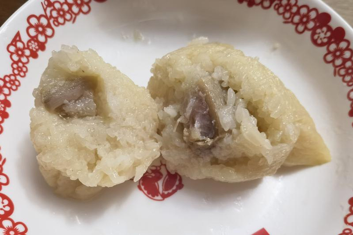 加热后,能明显闻到竹筒和粽叶不同的清香,两者相交相融,非常清爽。
