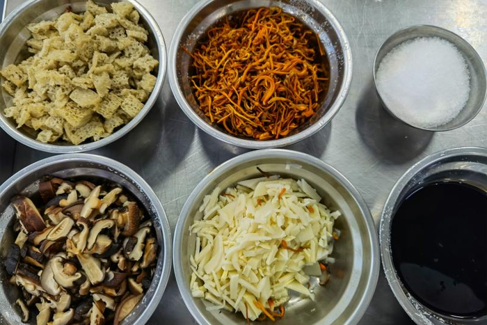 用了蛹草花、香菇、牛肝菌等三种菌菇,搭配冬笋,感觉就是一个“鲜”字。