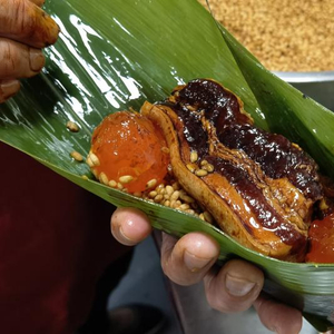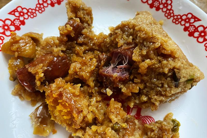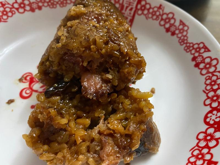虽然是真空粽,却不觉得猪肉“木”或“柴”;相反,猪肉有嚼头,肉味浓香。