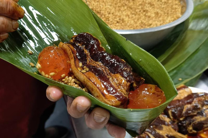 那么大的粽子怎么吃?原来,这是广东裹蒸粽的改良版——裹蒸粽讲究全家一起吃,之前每只都超过500克。考虑到现在是小家庭,才缩小了,但仍走“全家乐”特色。