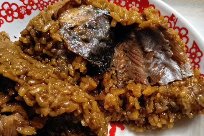 烤鳗鱼与咸香蛋黄肉粽搭配后,粽子有了海鲜的味道,鳗鱼肉质紧实,一点也不腥。