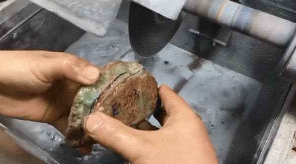 在赌石中,切石是最重要的一个环节。谚语说“一刀穷,一刀富,一刀披麻布”。©B站@边境淘客光哥