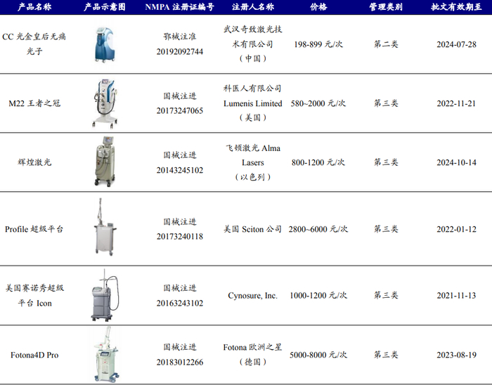 目前国内光治疗设备市场仍以进口设备为主,国内企业也在加速布局。国外光治疗设备发展起步较早、技术较成熟,因此目前国内市场以进口产品为主,代表公司有Fotona欧洲之星、Candela、Cynosure赛诺秀、Lumenis科医人及Alma Lasers飞顿激光等;国内企业通过自主研发及投资并购等路径,也在快速迎头赶上。