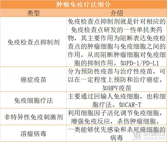 把肿瘤免疫疗法领域分为非特异性免疫刺激剂、癌症疫苗、免疫检查点阻断剂、免疫细胞疗法四大分类。免疫检查点阻断剂的代表就是PD-1/PD-L1,前面已经提到,这个领域高瓴已经重度布局。