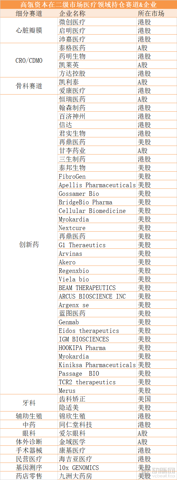 在二级市场中,高瓴在具体赛道上的侧重和布局与一级市场类似,同样是非常看好生物医药,这主要源于高瓴选择以长期投资作为战略。实际上,高瓴持仓的生物医药企业,大多是在一级市场就已经早期投入,然后在二级市场持续加仓,长期陪伴,呈现出高瓴全阶段长期投资的鲜明特点。