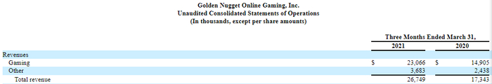 2、Golden Nugget Online Gaming Inc.(GNOG.O)